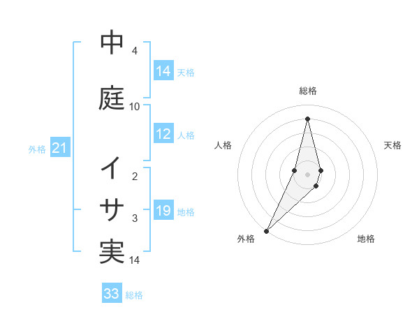 中庭 イサ実さんを姓名の画数から五運を鑑定