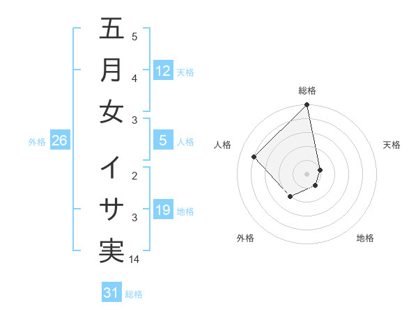五月女 イサ実さんを姓名の画数から五運を鑑定