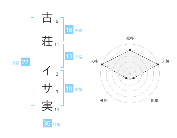 古荘 イサ実さんを姓名の画数から五運を鑑定