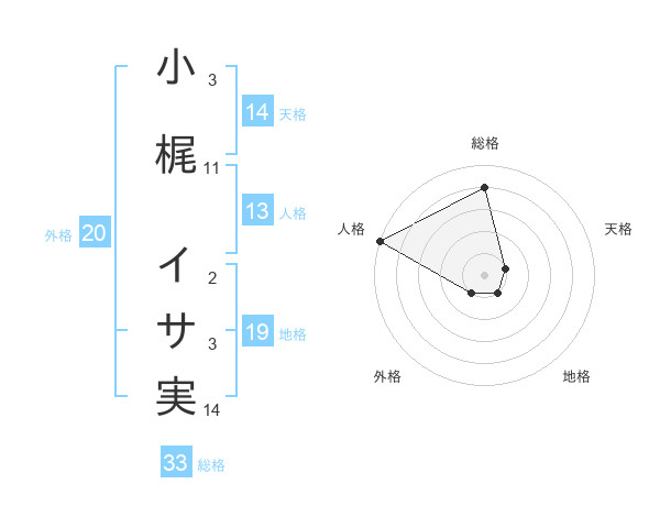 小梶 イサ実さんを姓名の画数から五運を鑑定