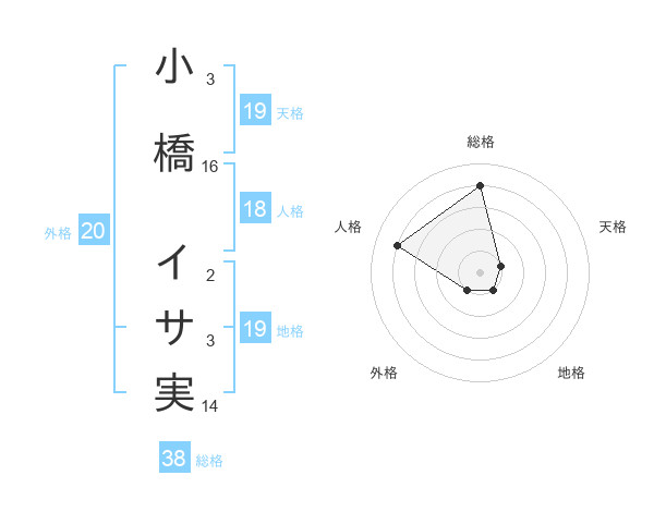 小橋 イサ実さんの総格は38画の4点