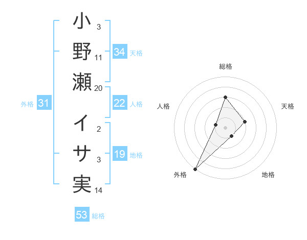 小野瀬 イサ実さんを姓名の画数から五運を鑑定