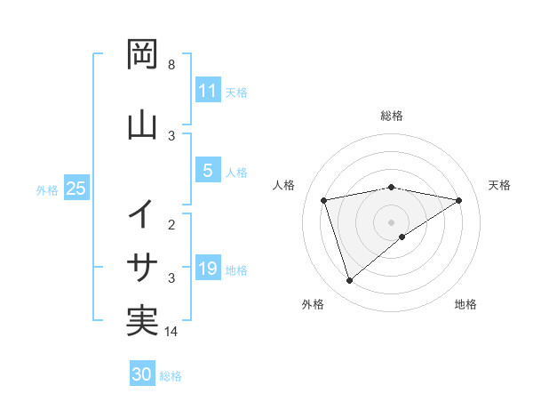 岡山 イサ実さんを姓名の画数から五運を鑑定