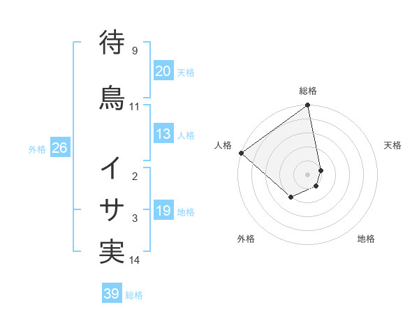 待鳥 イサ実さんを姓名の画数から五運を鑑定
