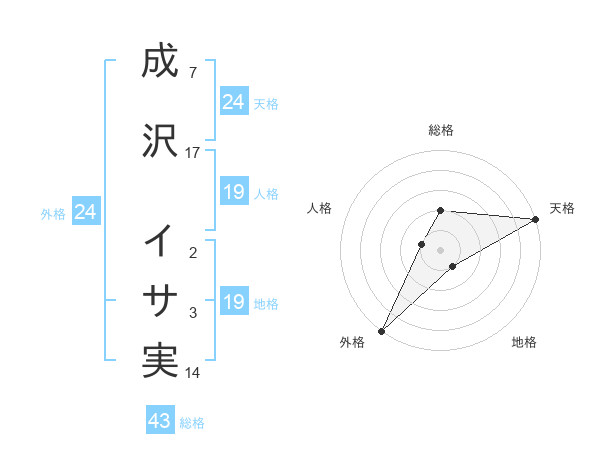 成沢 イサ実さんを姓名の画数から五運を鑑定