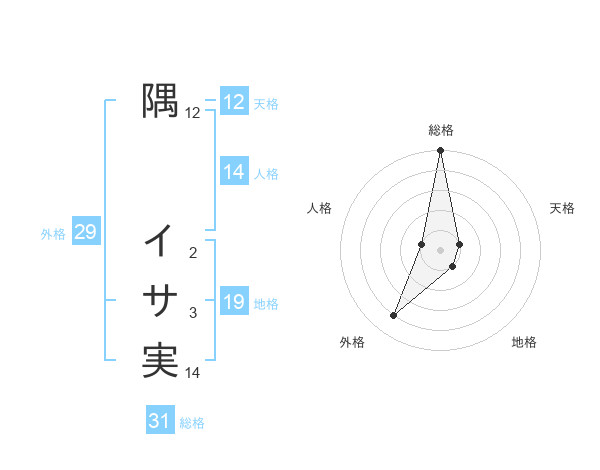 隅 イサ実さんを姓名の画数から五運を鑑定