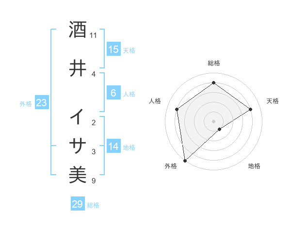 酒井 イサ美さんの総格は29画の4点!