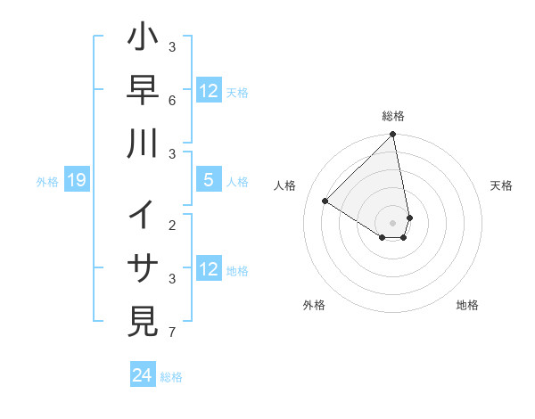 小早川 イサ見さんの総格は24画の5点!