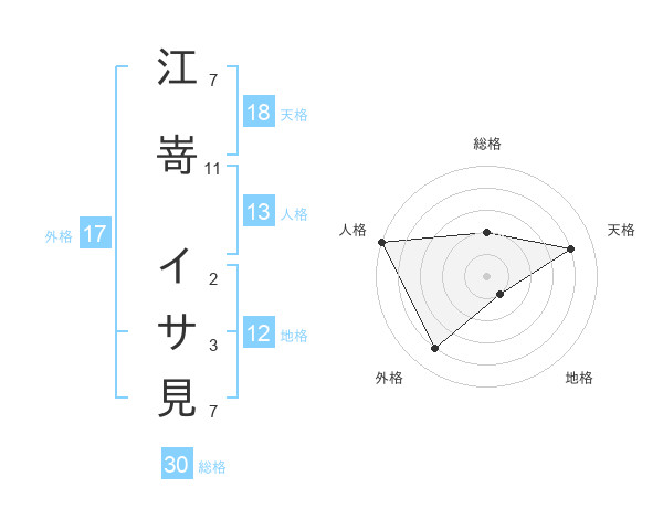 江嵜 イサ見さんの総格は30画の2点!
