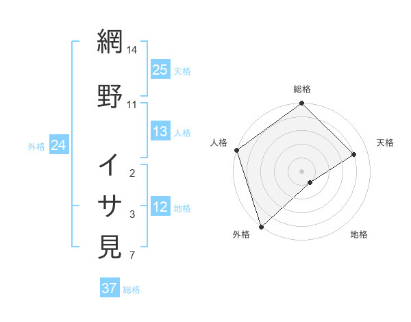 網野 イサ見さんを姓名の画数から五運を鑑定