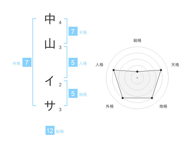 中山 イサさんの天格は7画の4点!