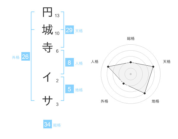 円城寺 イサさんの天格は29画の4点!