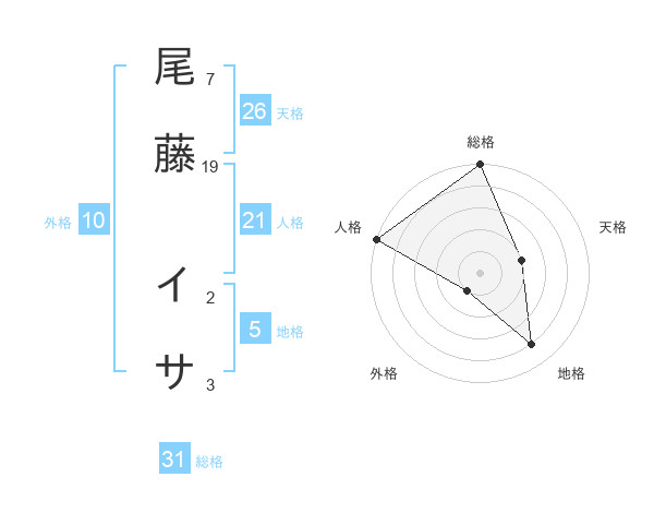 尾藤 イサさんを姓名の画数から五運を鑑定
