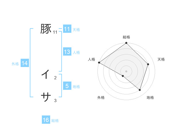 豚 イサさんの総格は16画の5点!
