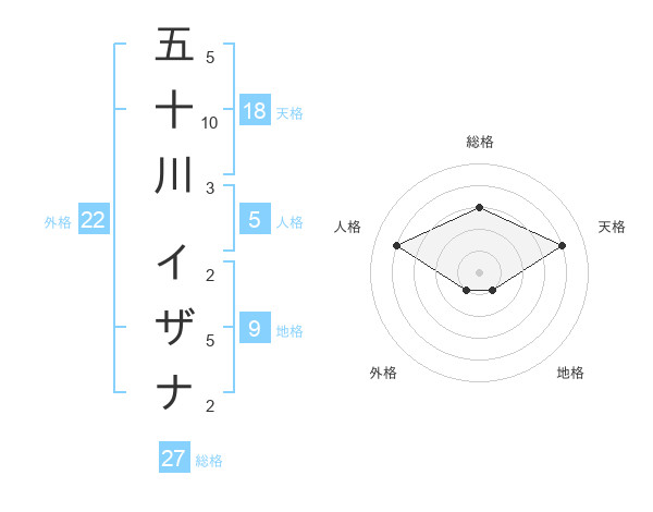 五十川 イザナさんを姓名の画数から五運を鑑定