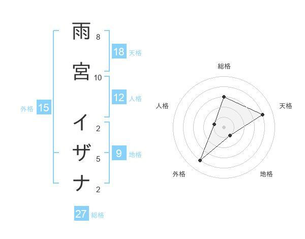 雨宮 イザナさんを姓名の画数から五運を鑑定