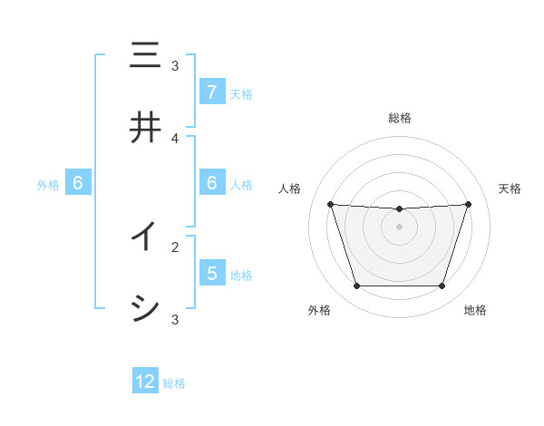 三井 イシさんの外格は6画の4点!