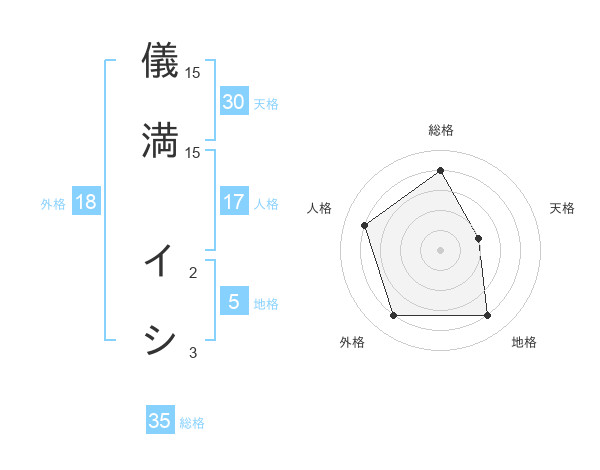 儀満 イシさんの天格は30画の2点!