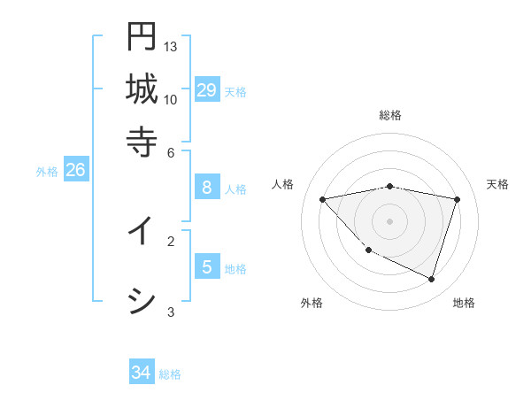円城寺 イシさんの地格は5画の4点!