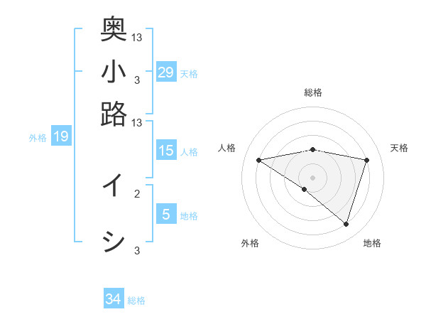 奥小路 イシさんの総格は34画の2点!