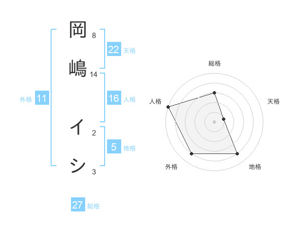 岡嶋 イシさんを姓名の画数から五運を鑑定