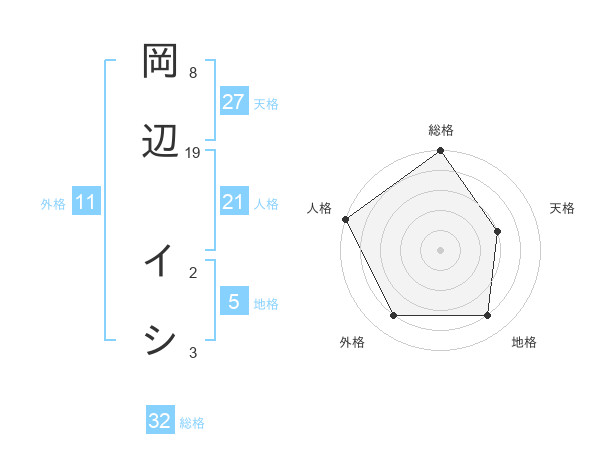 岡辺 イシさんを姓名の画数から五運を鑑定