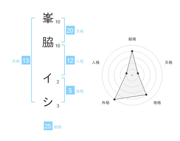 峯脇 イシさんの総格は25画の4点!