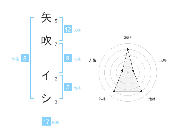 矢吹 イシさんの総格は17画の4点!