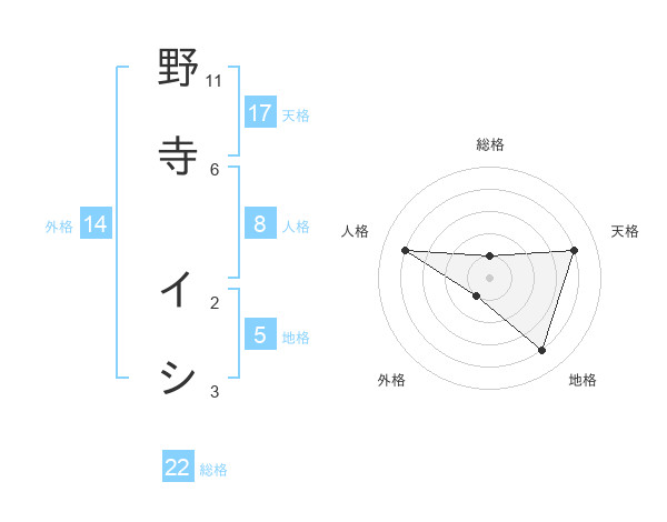 野寺 イシさんの総格は22画の1点!