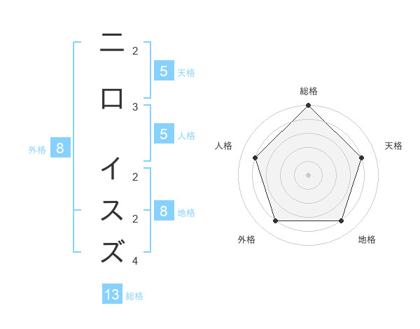 二口 イスズさんの総格は13画の5点!