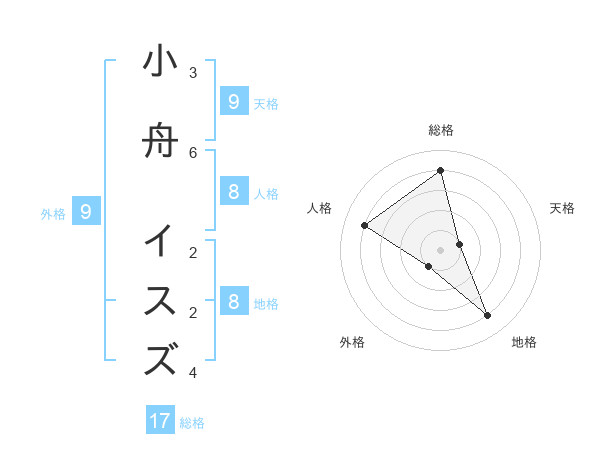 小舟 イスズさんを姓名の画数から五運を鑑定
