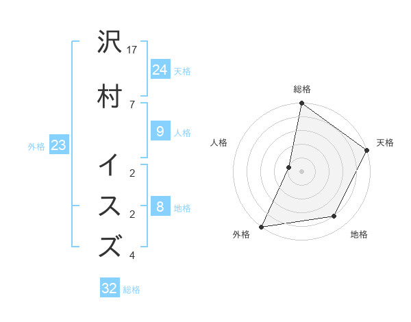 沢村 イスズさんを姓名の画数から五運を鑑定
