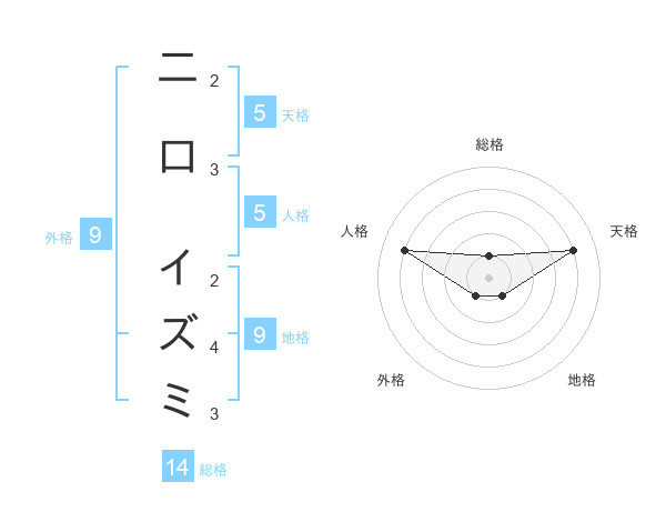 二口 イズミさんの天格は5画の4点!
