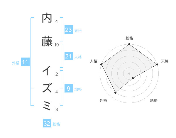 内藤 イズミさんの天格は23画の5点!