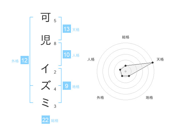 可児 イズミさんの天格は13画の5点!