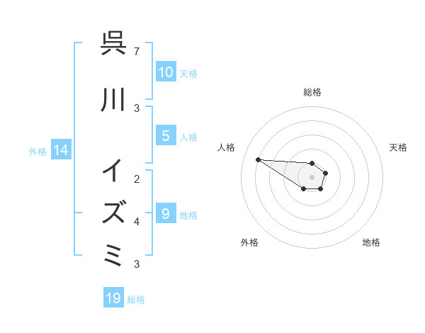 呉川 イズミさんの総格は19画の1点!