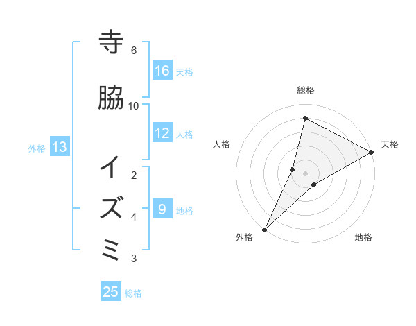 寺脇 イズミさんを姓名の画数から五運を鑑定