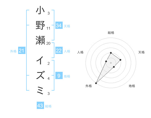 小野瀬 イズミさんを姓名の画数から五運を鑑定