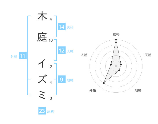 木庭 イズミさんの総格は23画の5点!