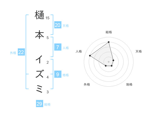 樋本 イズミさんの総格は29画の4点!