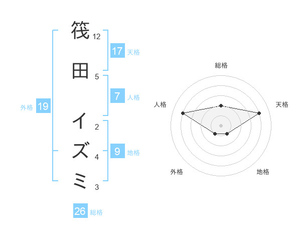 筏田 イズミさんを姓名の画数から五運を鑑定