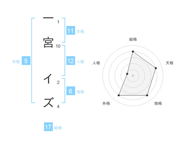 一宮 イズさんの総格は17画の4点!