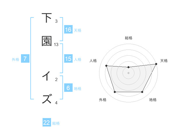 下園 イズさんの総格は22画の1点!