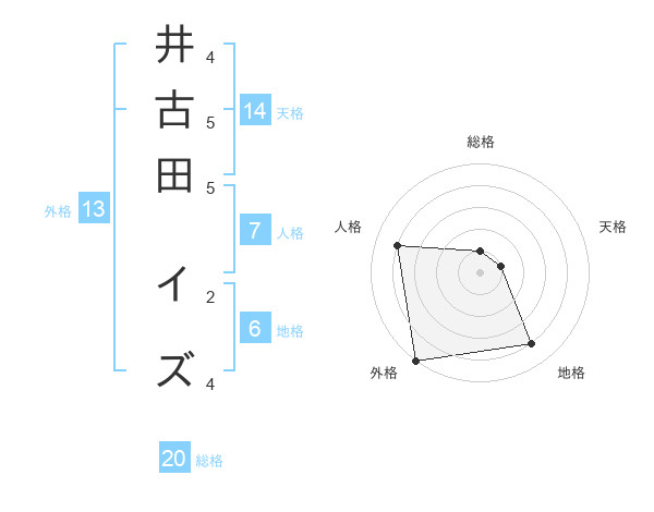 井古田 イズさんの総格は20画の1点!