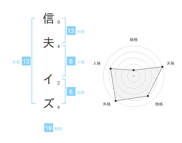 信夫 イズさんの天格は13画の5点!