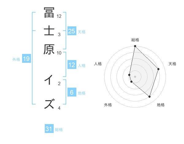 冨士原 イズさんを姓名の画数から五運を鑑定