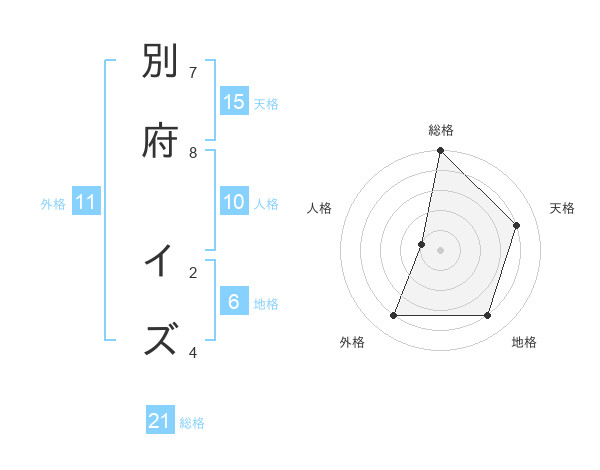 別府 イズさんの総格は21画の5点!