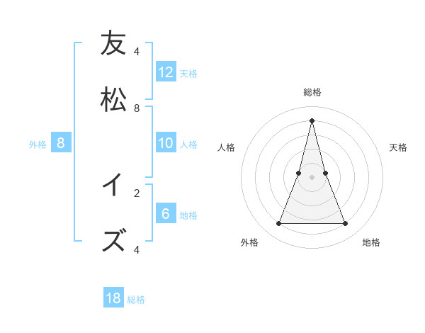 友松 イズさんの総格は18画の4点!