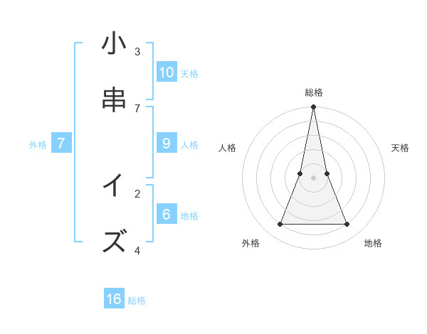 小串 イズさんの総格は16画の5点!