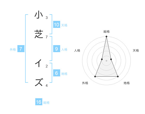 小芝 イズさんの総格は16画の5点!